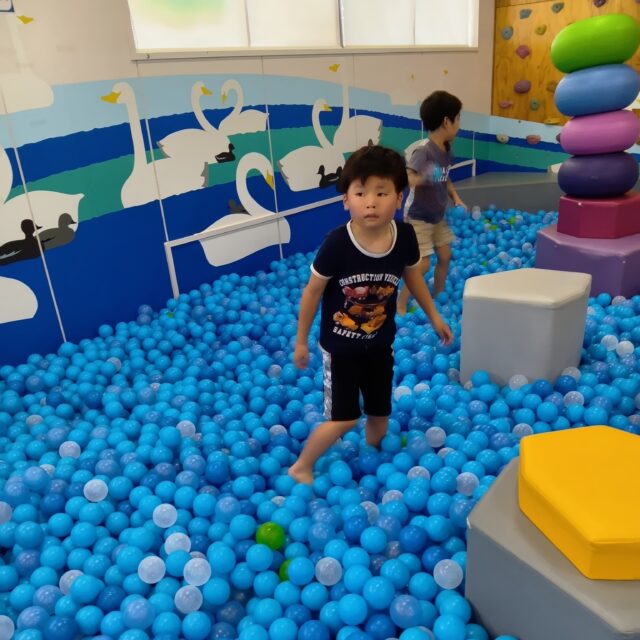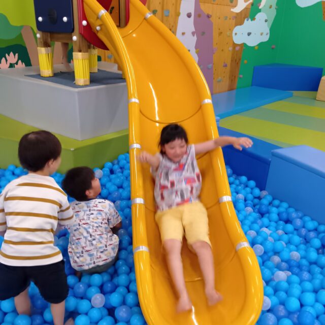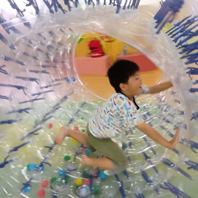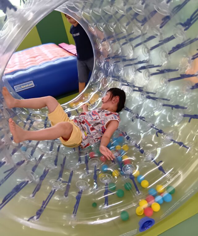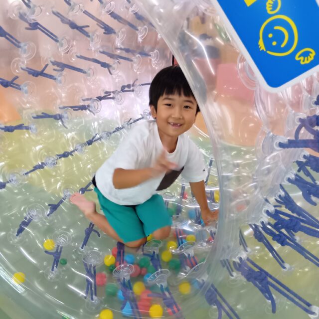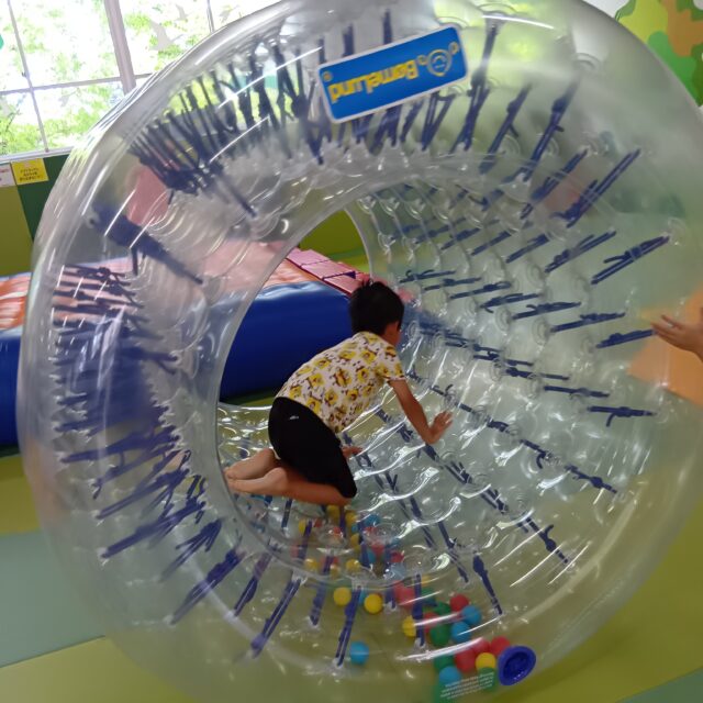 広いボールプールやおままごと、大きなトランポリンにハイパーホイール(ビニール製の大きなタイヤのようなもの)など、自分の好きなものを選ぶと、お友だち同士で楽しそうに遊ぶことができていました。
