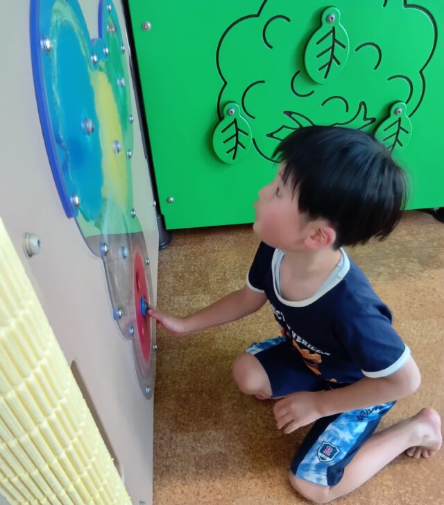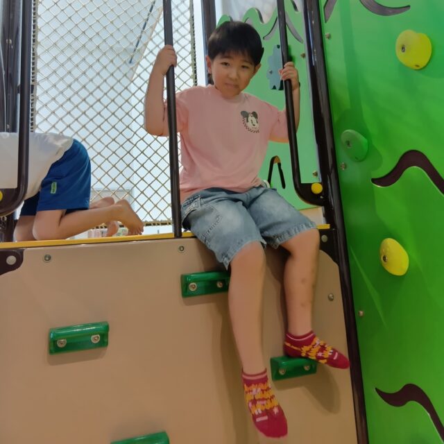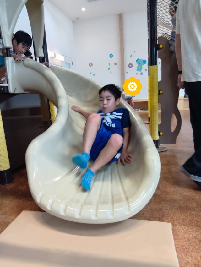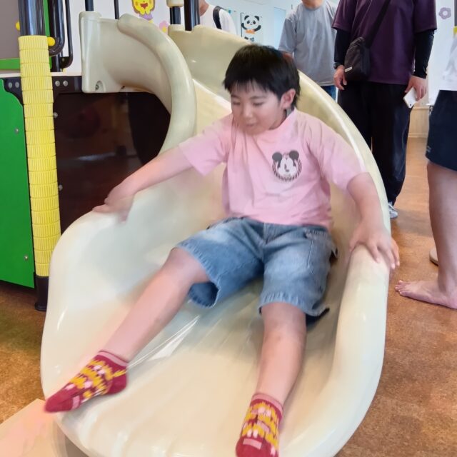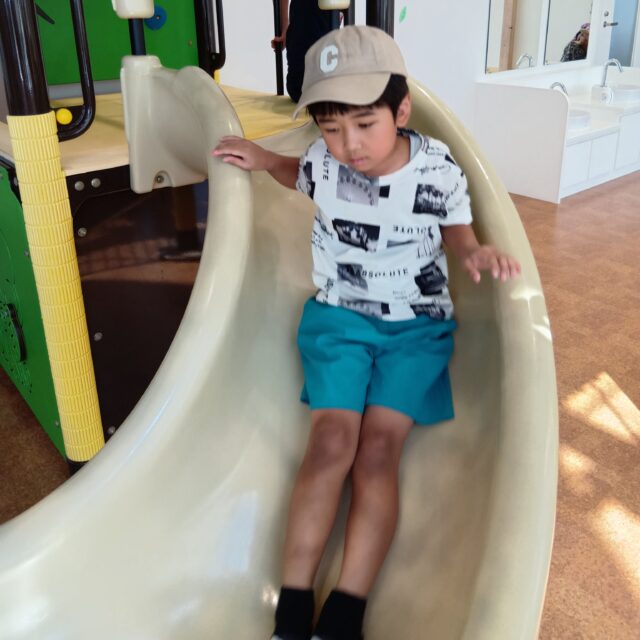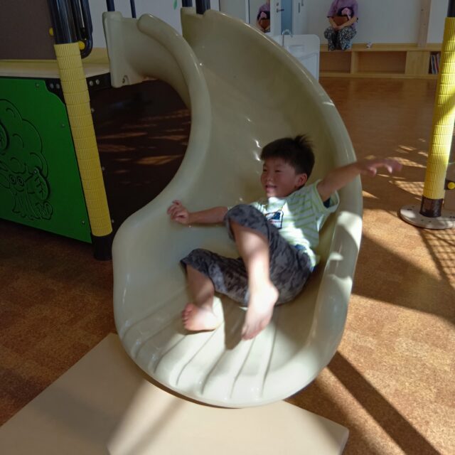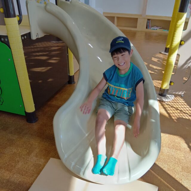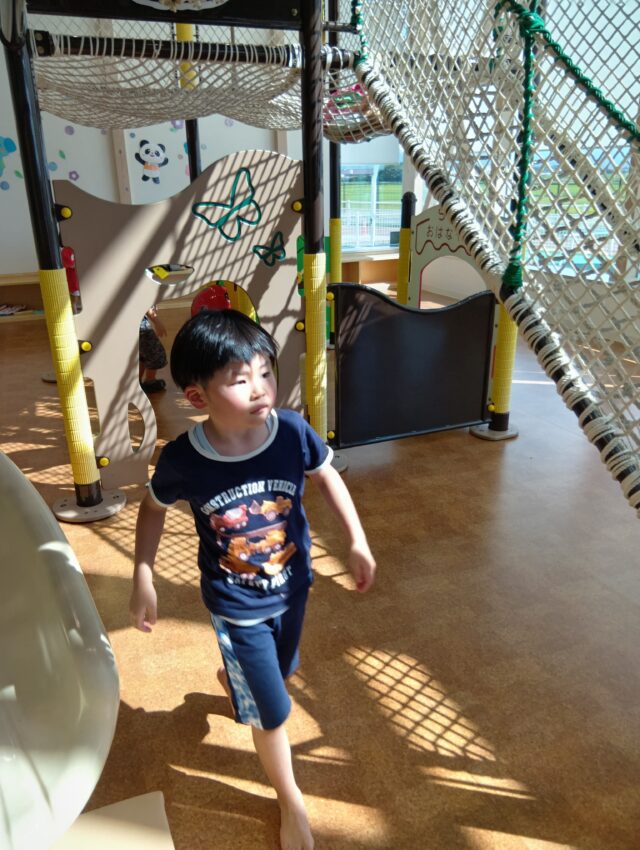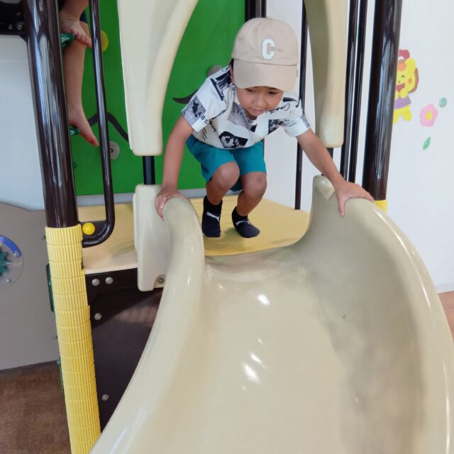 外で遊ぶにはまだ暑すぎたので、外は5分限定にし、室内遊具を中心に遊ぶことにしました。