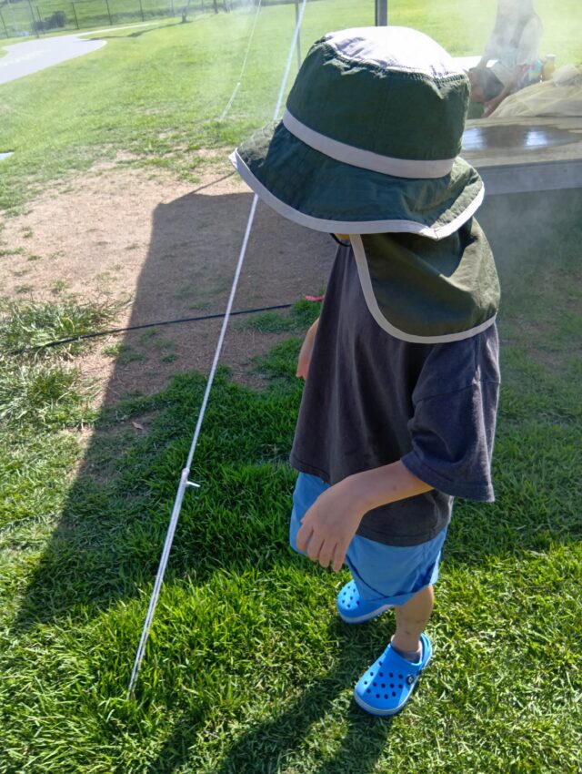 トイレに行き、帽子と水筒とタオルを持って、準備完了です。