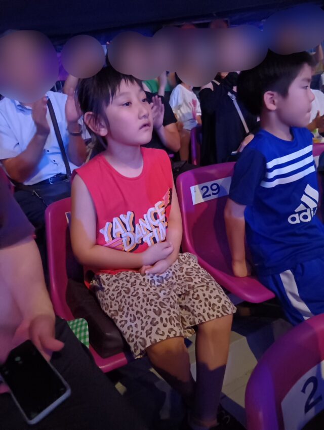 会場に着き、席に案内されると「広いね!」「楽しみだね!」とワクワクしている様子でした。
