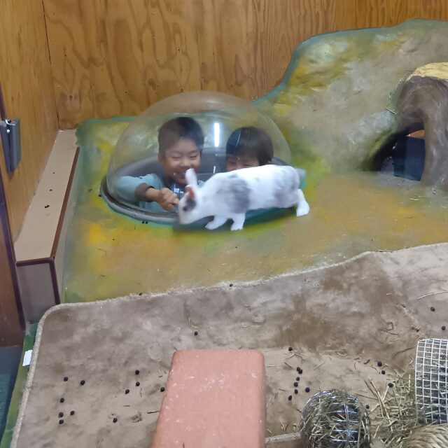 この日はあいにく遊具がある階が工事中で、滑り台などの一部の区域でしか遊べませんでしたが、その分ゆっくり動物と戯れることができました。
